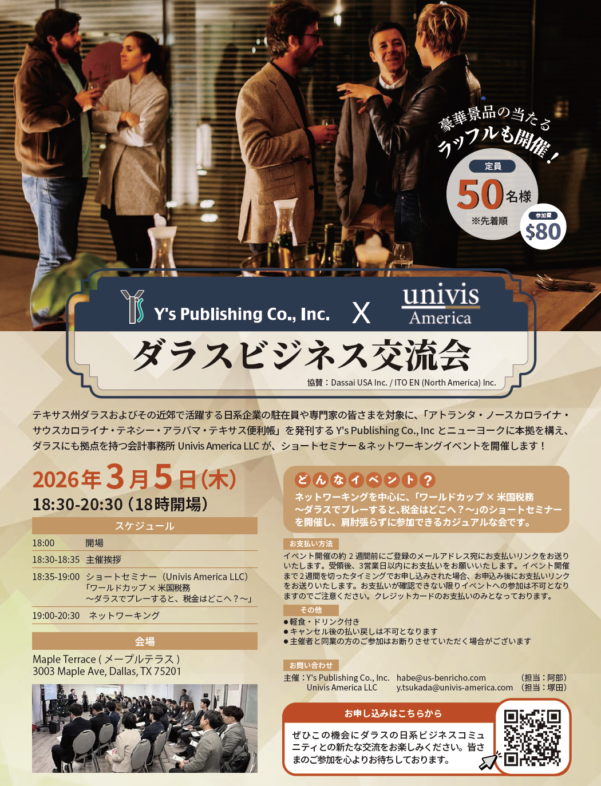 ニューヨークに本拠を構え、ダラスにも拠点を持つ会計事務所Univis Americaとの共催で、