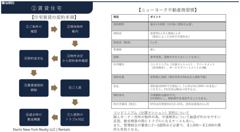 ニューヨークでの生活をスタートするにあたり、駐在員の方には契約のしやすさと住環境のバランスに優れたレンタルアパートメント、またはコンドミニアムが現実的な選択肢となります。