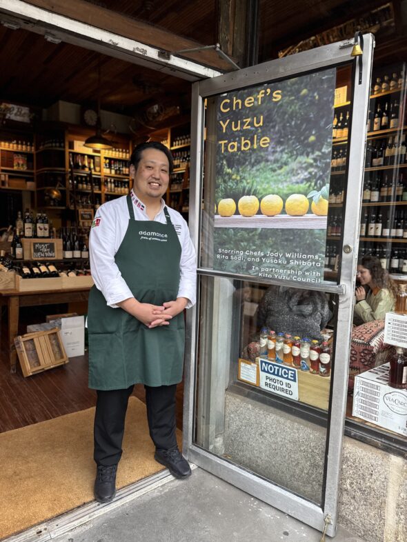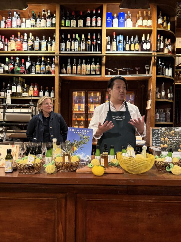 2025年秋、ニューヨークのウエストビレッジにある「Officina del Bere 1397」で、徳島県の名産である木頭ゆずの魅力を発信するイベントが開催された。同イベントは、木頭ゆずのアンバサダーを務める柴田勇作氏(写真中央。以下、柴田氏)が「食」をテーマにしたメディアEdible Manhattanとのコラボイベントで、ニューヨークのスターシェフであるJody Willimas氏(写真左)とRita Sodi氏(写真右)が参加。来場したゲストに木頭ゆずを使ったスイーツやフードを振る舞った。