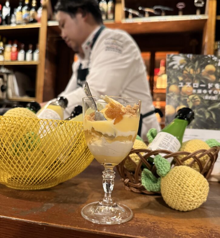 イベント参加者からの質疑応答を終えたあとは、柴田氏が創作し、木頭ゆずを使用したスイーツのテイスティング。今回提供された木頭ゆずパフェは、まるでミシュラン二ツ星以上のレストランで提供されるような極上の逸品。香り高くさっぱりとした味わいで、ひと口頬張るたびに幸せが訪れる、そんな素敵なデザートだった。あまりの美味しさにあっという間に食べ終わってしまうゲストが多かったことも印象的だ。